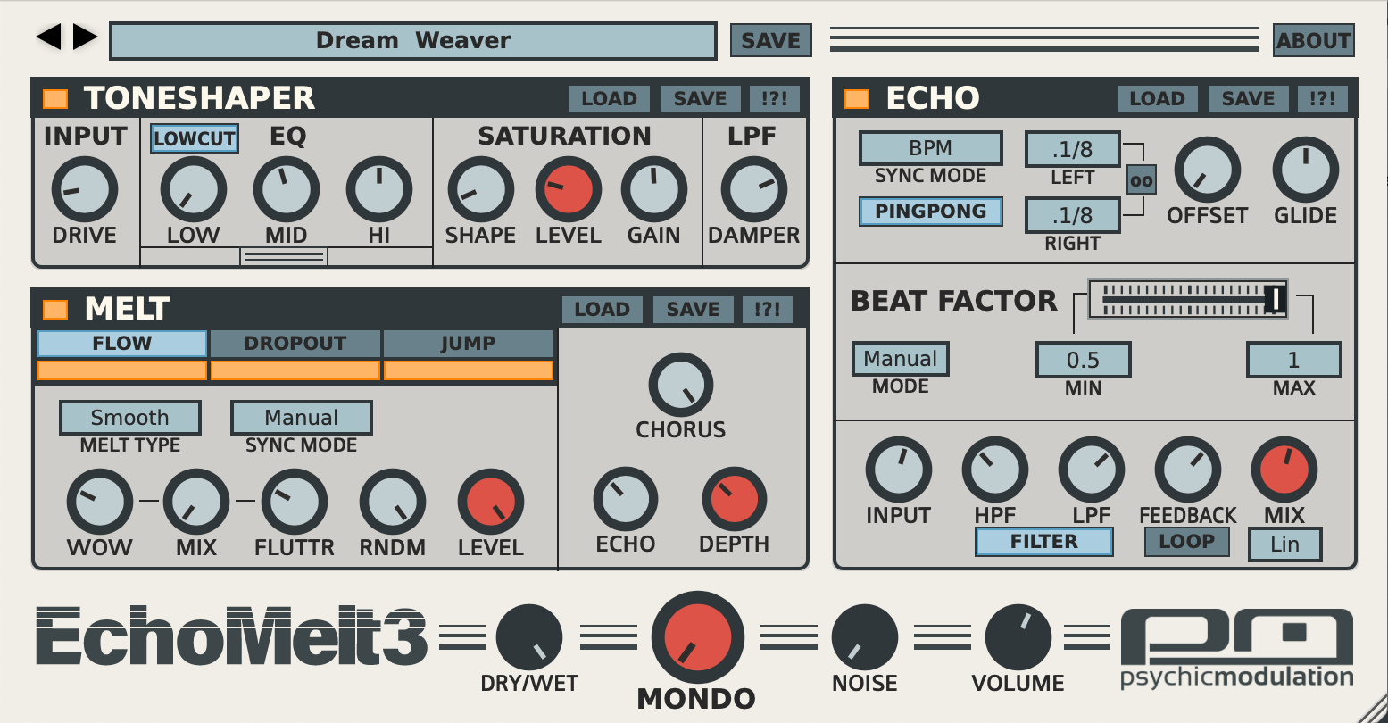 MondoMelt: A big knob for emphasizing multiple aspects of the overall effect.