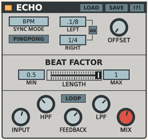 Beat Factor: A crossfade-style slider for beat juggling different delay times.