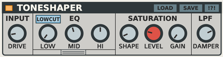 Saturation: This saturation is full of character with a shaping control for extra crunchy distortion.